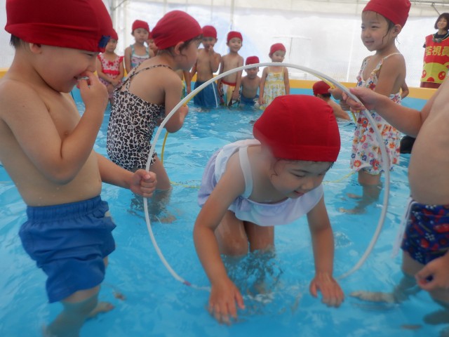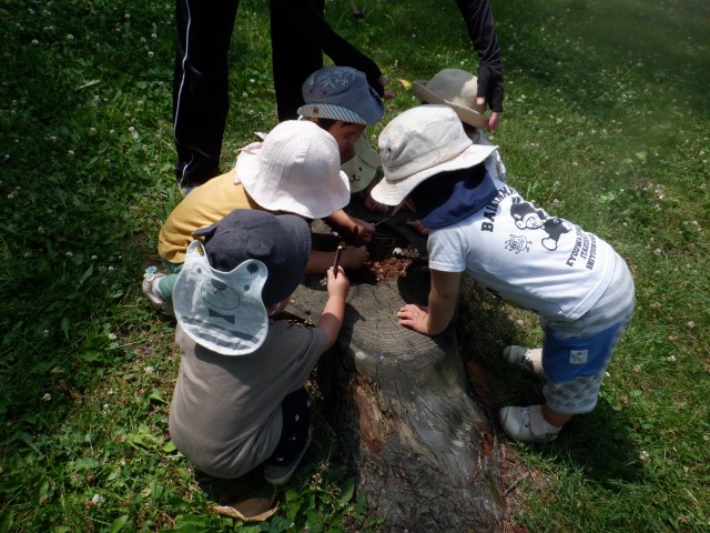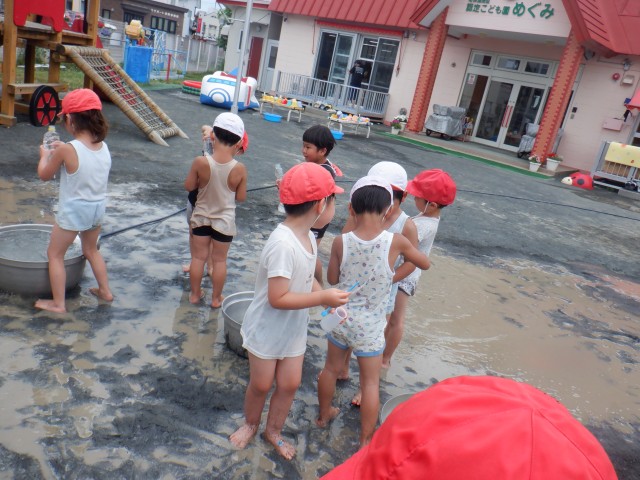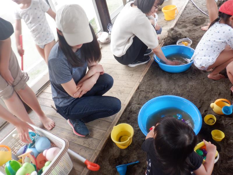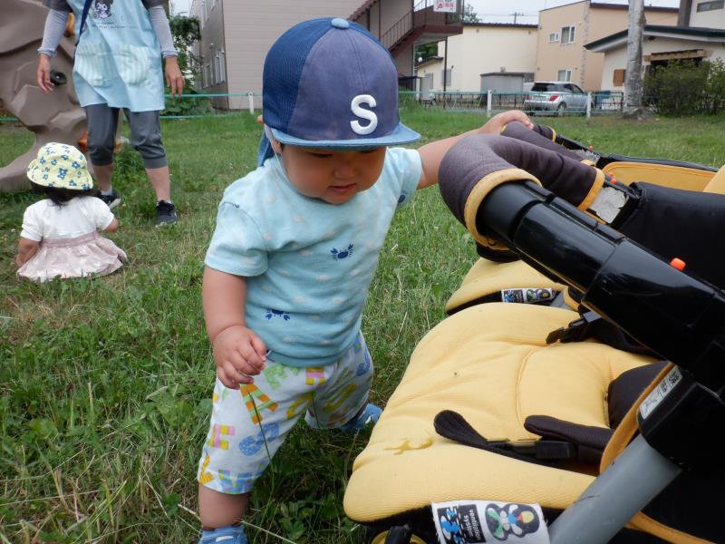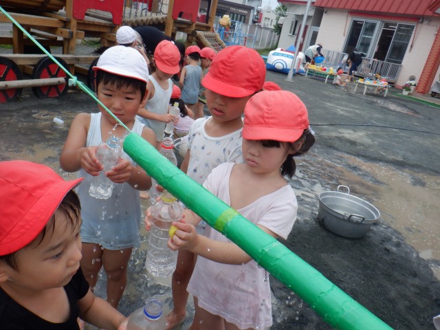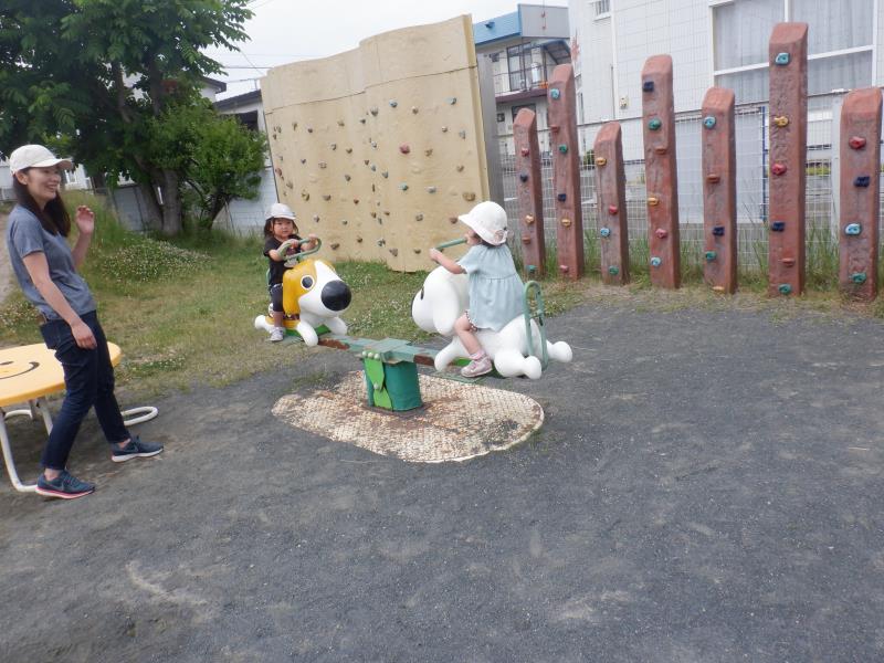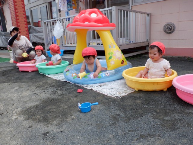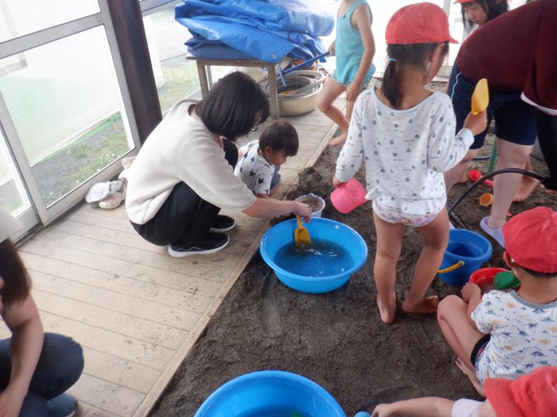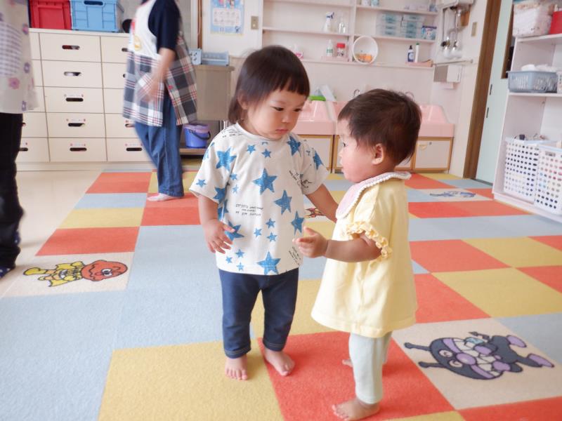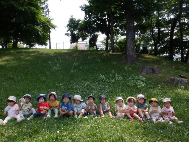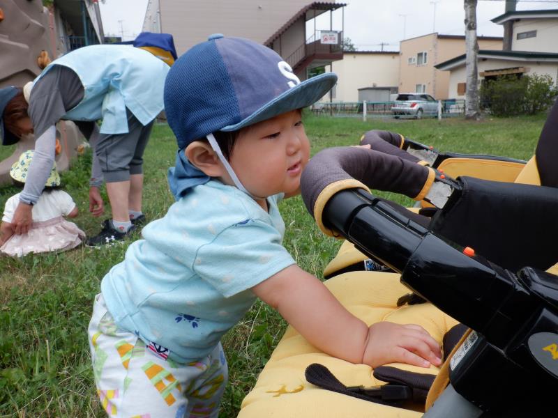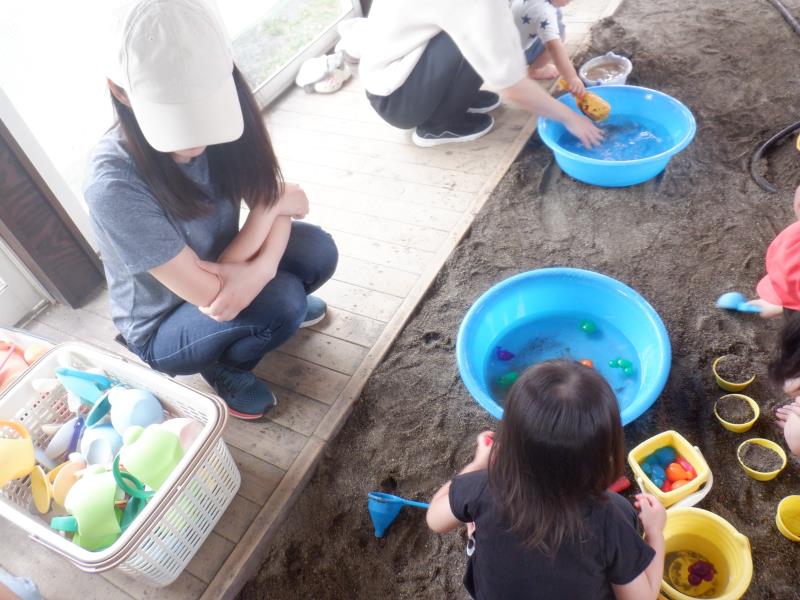 ゆりぐみさんがシャボン玉を見せにきてくれたよ