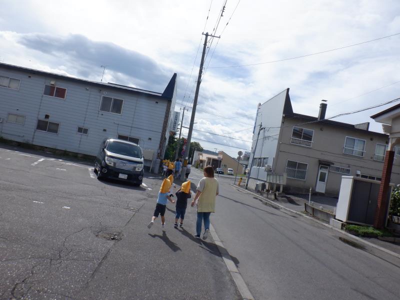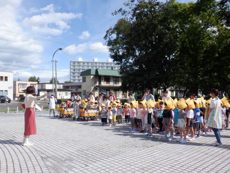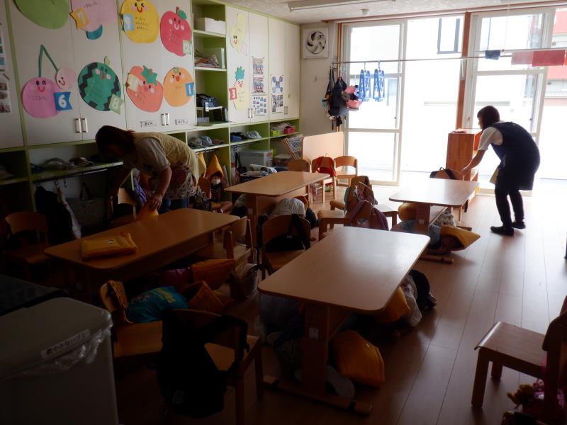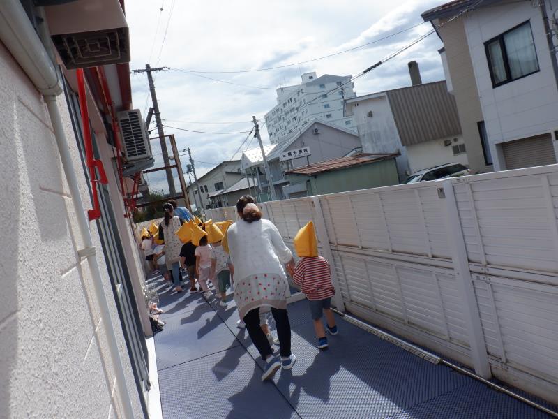 今日は初めて防災頭巾を被っての避難でしたが、みんな上手に逃げることができましたよ。