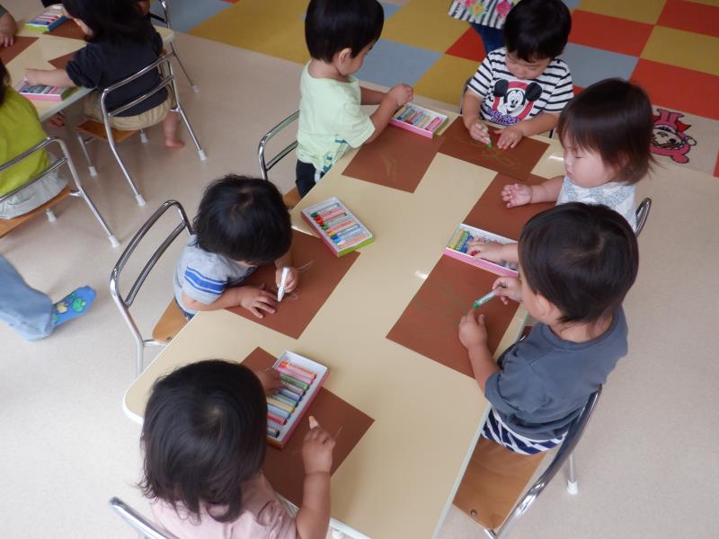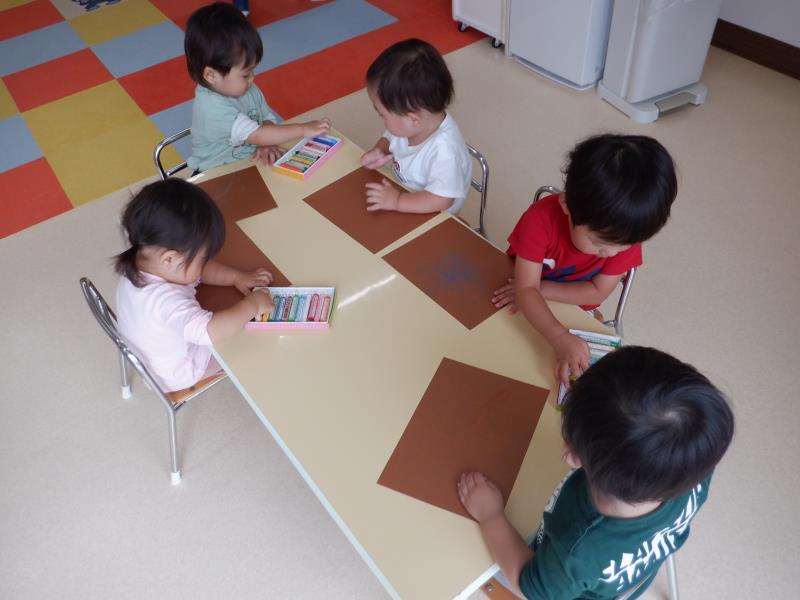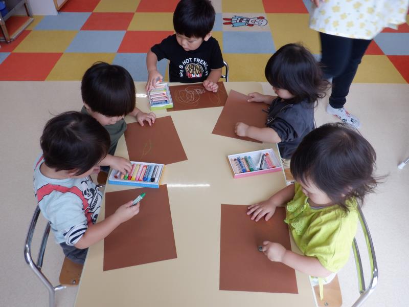 そのあとは、茶色い画用紙に好きな色のクレヨンで色をぬりぬり。