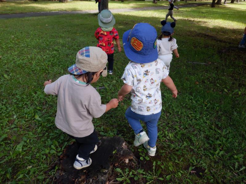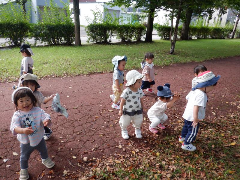 葉っぱオバケで盛り上がったり、かくれんぼごっこをしたりと、たくさん遊びました。