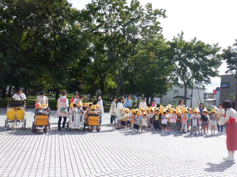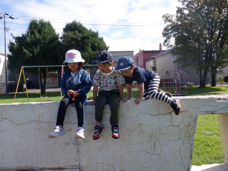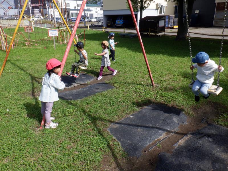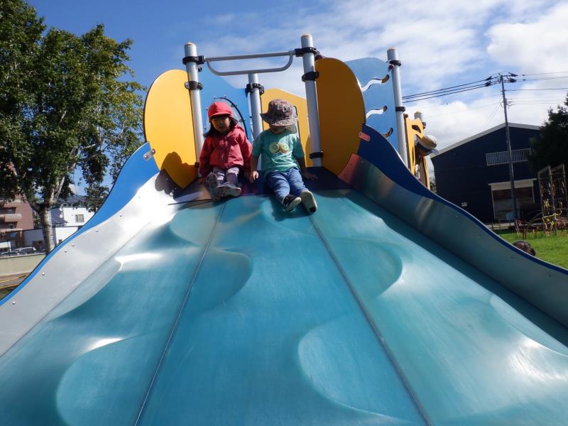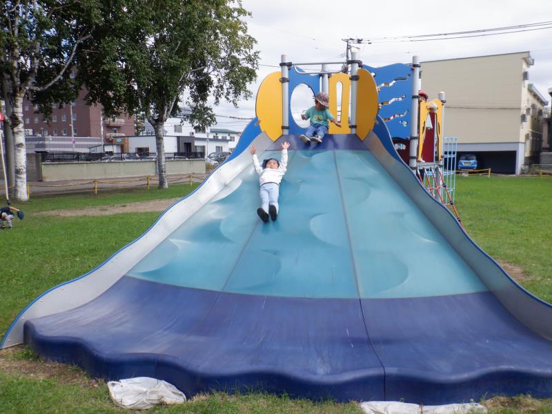 避難訓練後、そのまま石北公園で遊んだももさん。