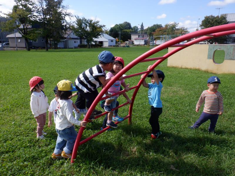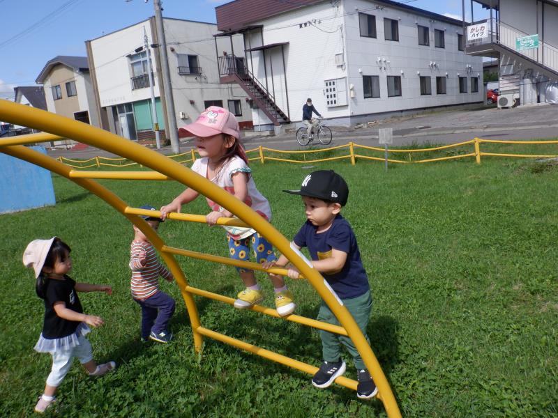 園庭で、遊具遊びを楽しむちゅうりっぷさん。