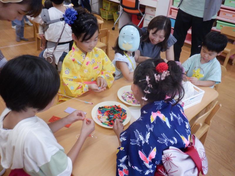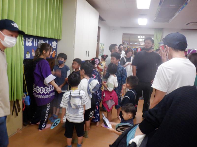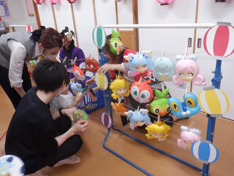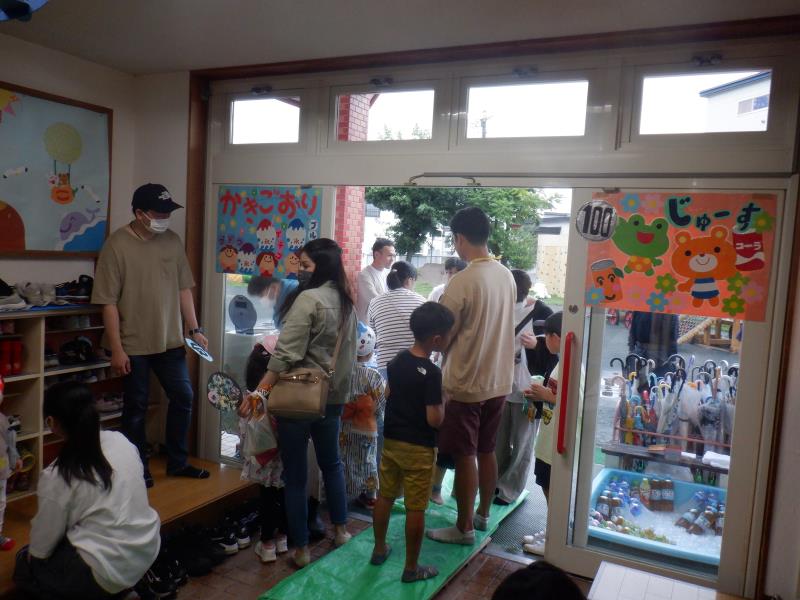 お父さんやお母さんと一緒に、園内でのお祭りに参加しました。