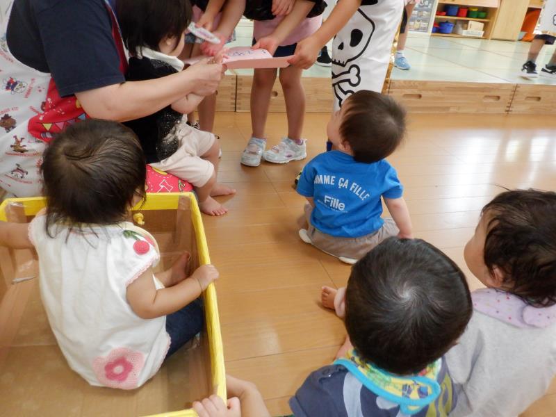 活動前に、お遊戯室で明日のカレーレストラン券をゆりさんから貰ったももさん。嬉しそうでしたよ~!