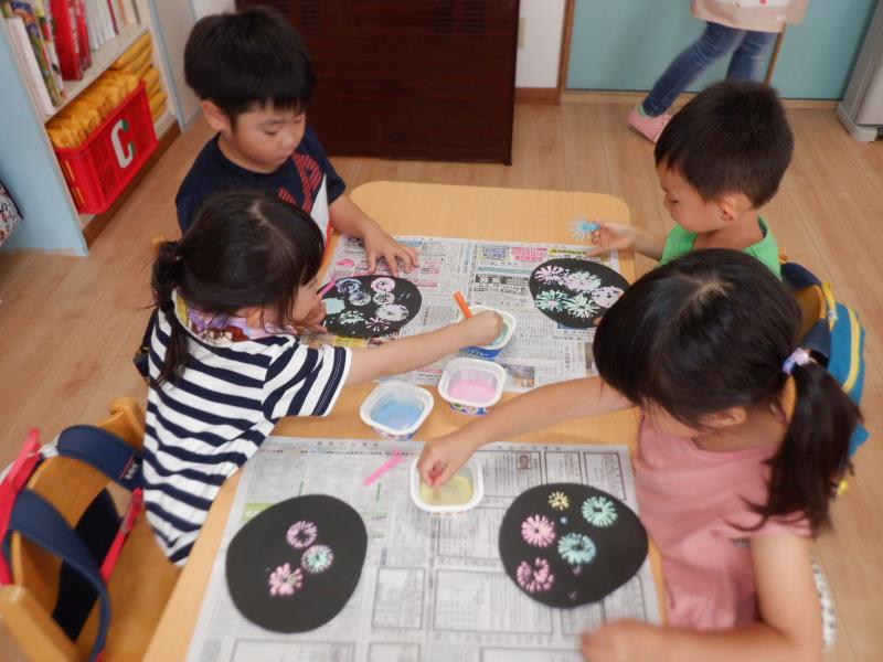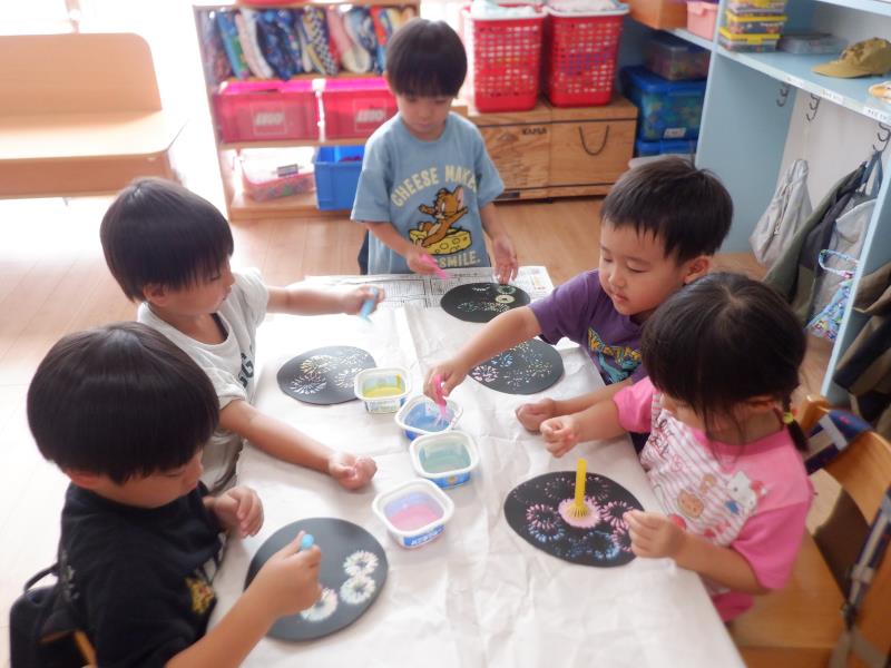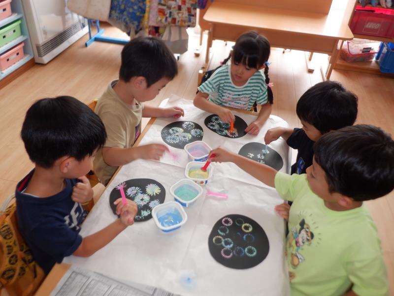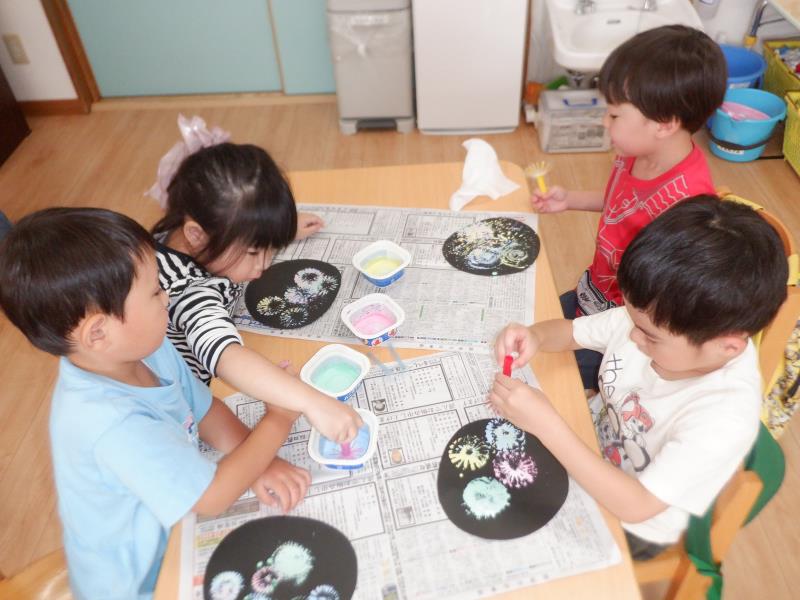 単色だったり色を混ぜたり好きなように花火を打ち上げて、とってもきれいな花火が出来上がりました~☆