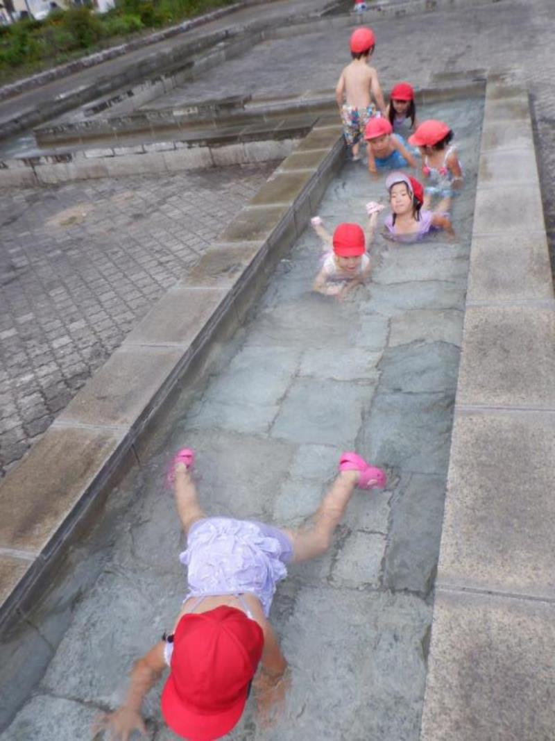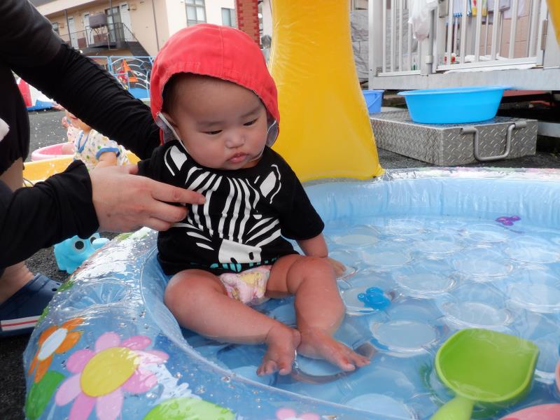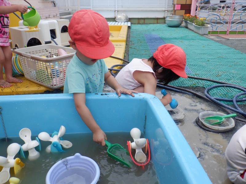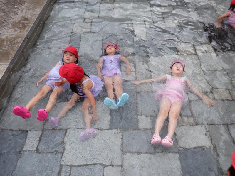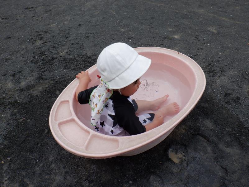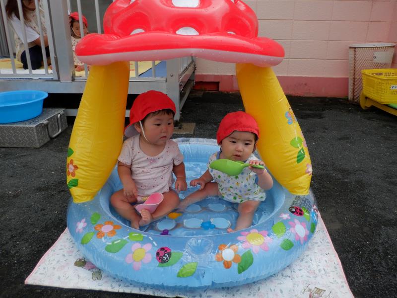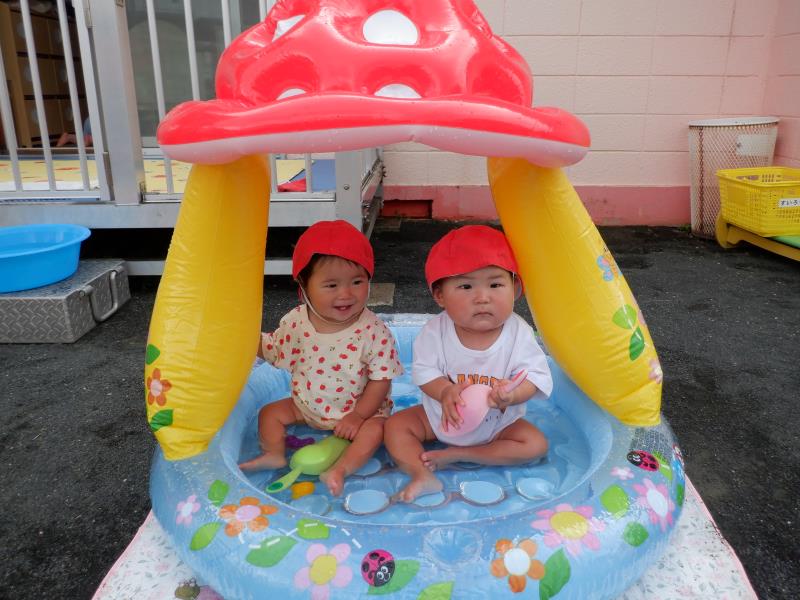 お友達と顔を見合わせて、嬉しそうに手を動かしてお水パチャパチャ。