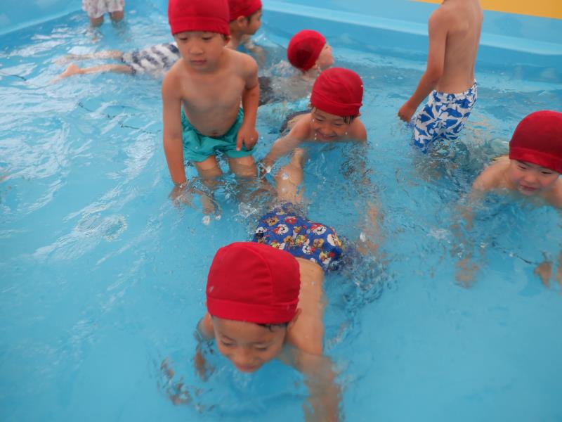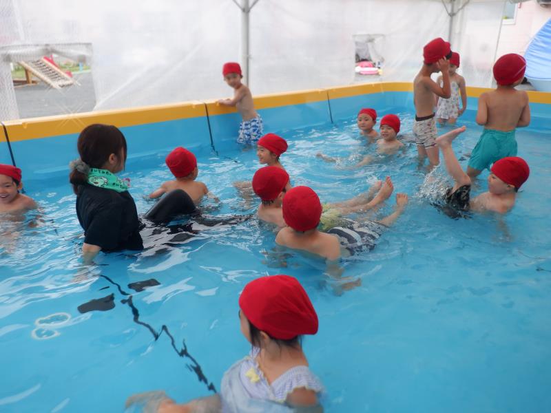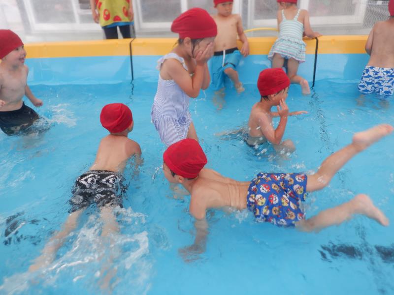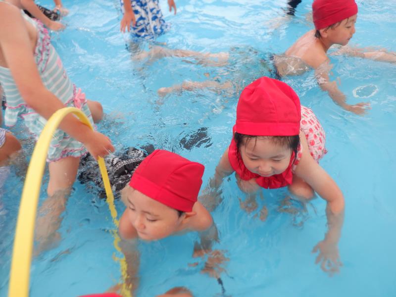 バタ足の練習をしたり、顔を水につけるお友達もいましたよ。