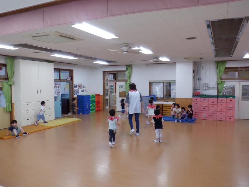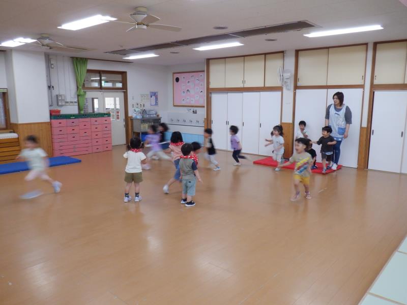 さくらさんは、お遊戯室で久しぶりに「ひっこし鬼」をしましたよ!