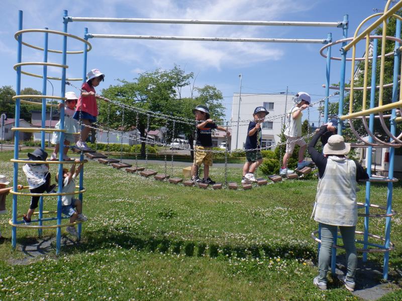 遊具の高いところにも、上手に登って渡れるようになりましたよ~!