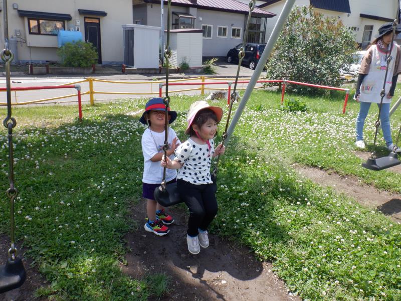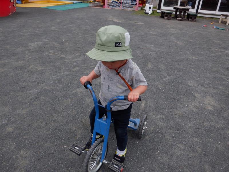昨日の「みんなで遊ぼう!」の続きで、しゃぼん玉や三輪車・砂遊び・遊具と、好きな遊びを選んで遊びました。