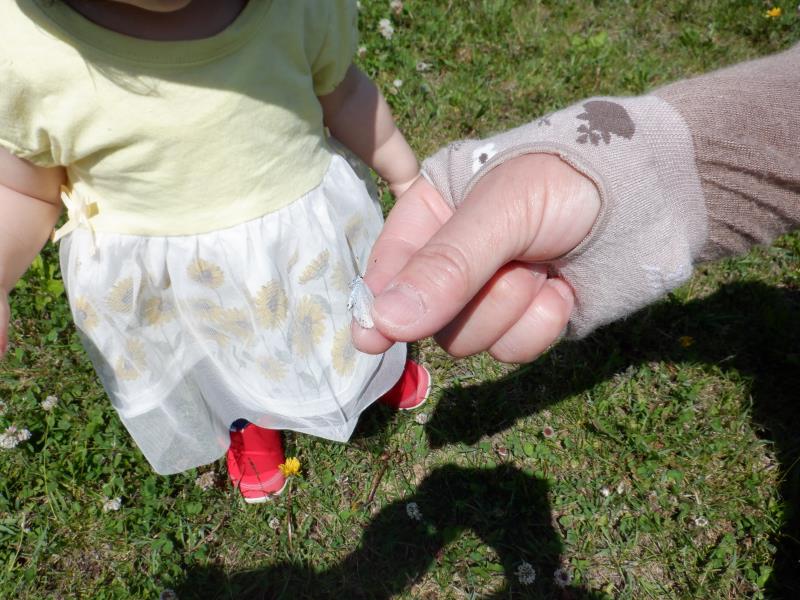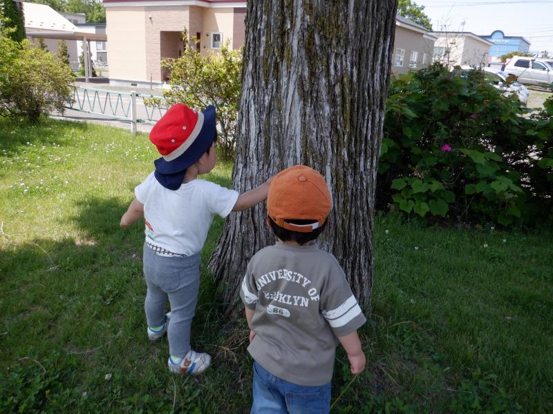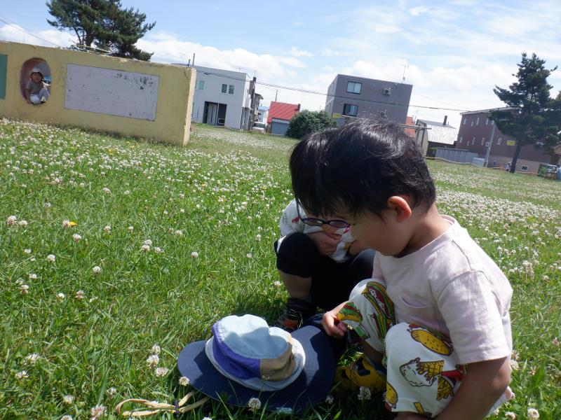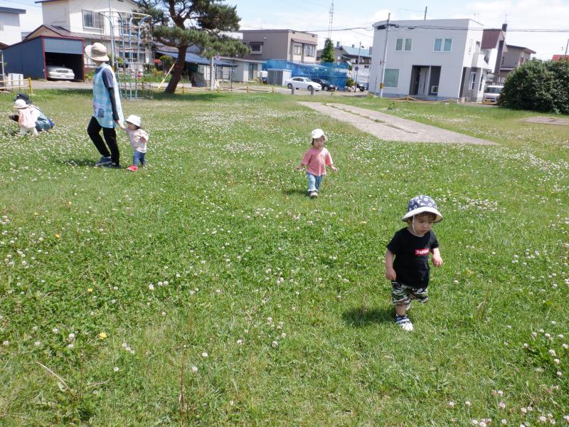 先生が蝶々を捕まえると、興味を持って触ろうとするお友達や、逆に蝶々に追いかけられるお友達もいましたよ!