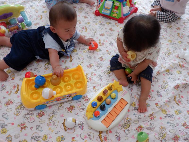 好きなおもちゃをさわったり、音を鳴らしてみんなご機嫌♬