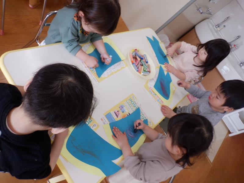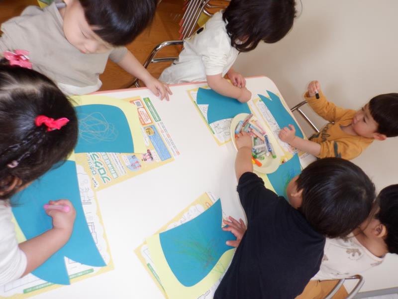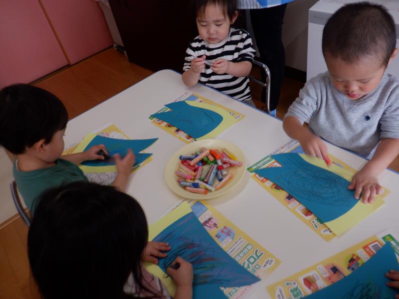こいのぼりの体は、クレヨンでグルグル描いちゃおう~!