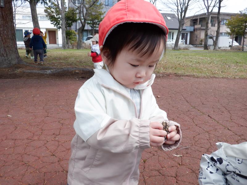 木の棒や松ぼっくりも見つけちゃった!