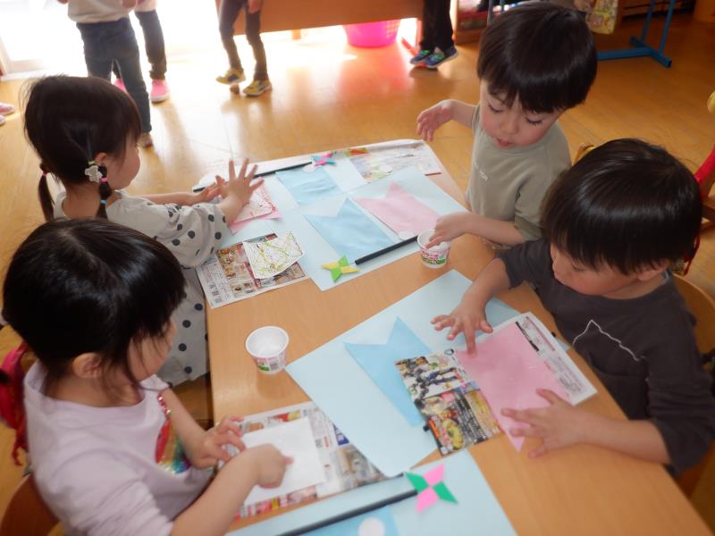 たんぽぽさん、こいのぼり制作の続きをしたよ!