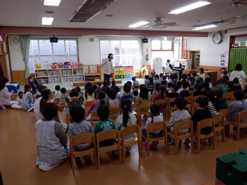 出し物は、先生による「3匹のこぶた」のフェイスパペット劇。