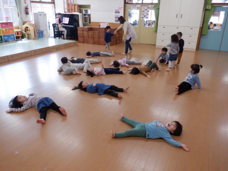 ピアノの音に合わせて体を動かすと楽しいねー!