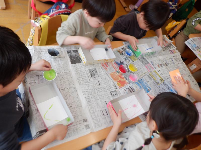 絵の具を付けたビー玉を紙の上で転がすと…