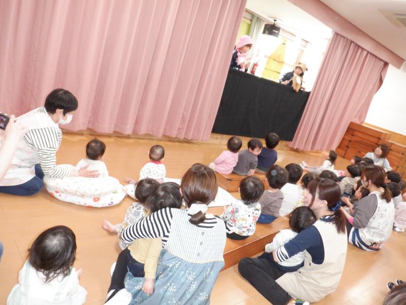 オオカミの登場にビックリするお友達もいましたが、楽しく先生の劇を観ていた子どもたちでした♪