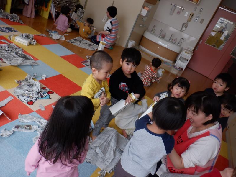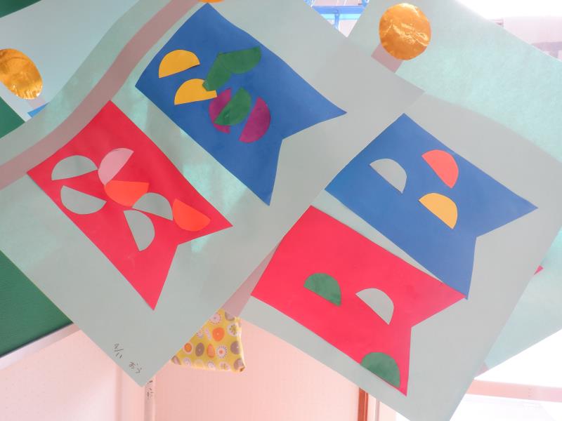 先週さくらさんがあげた子どもこいのぼりに見守られて、今日はこいのぼり制作!