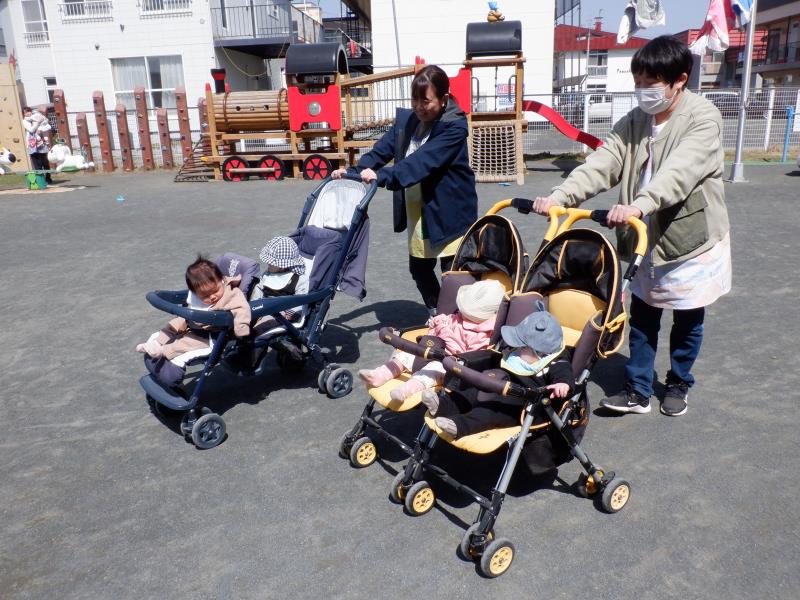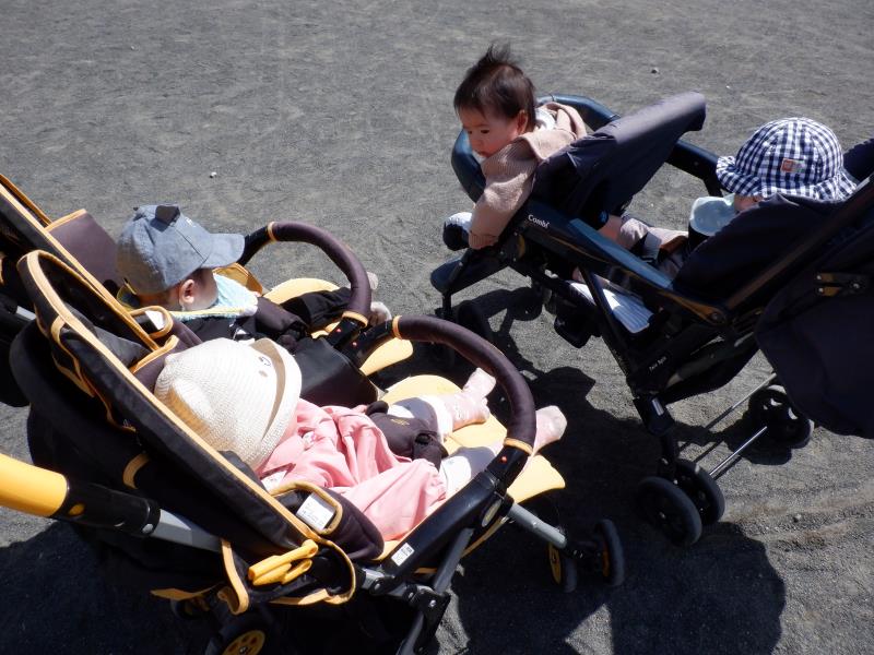 ベビーカーに乗って、周りをキョロキョロ眺めたり、風がそよそよ気持ちいい♪