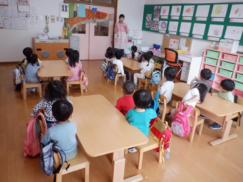 先生のお話を真剣に聴いているちゅうりっぷさん。