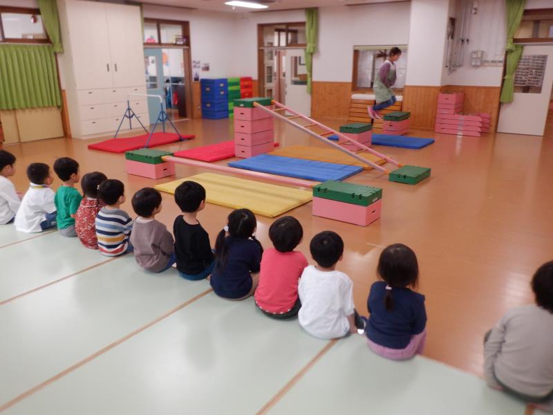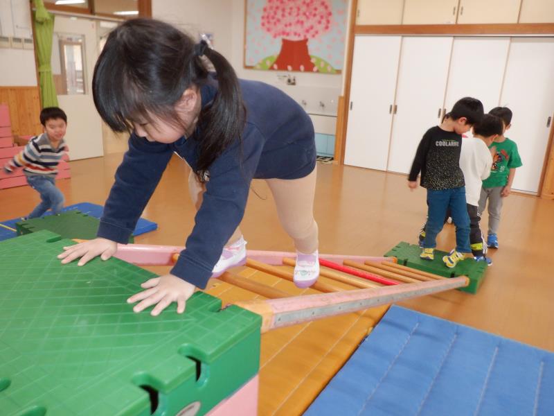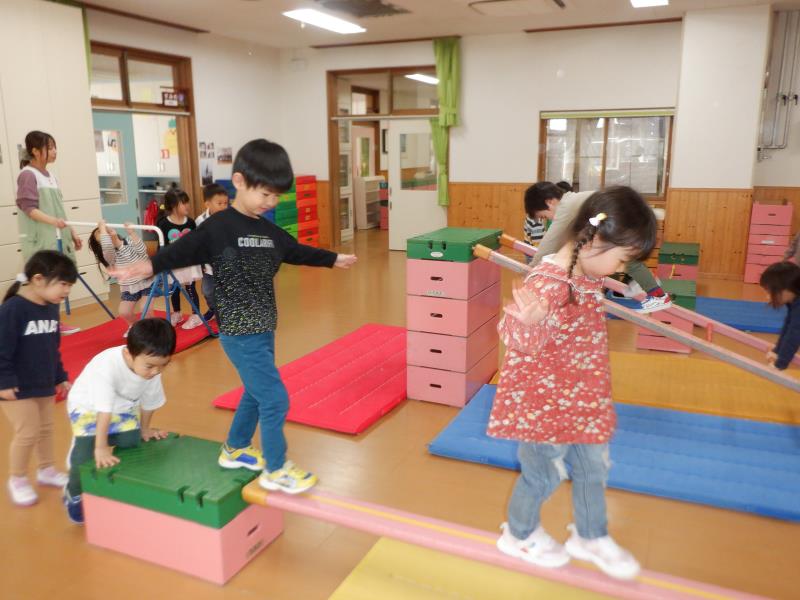 平均台、はしごのぼり、ジャンプに鉄棒…すみれさん、元気に体を動かして遊んだよ♪