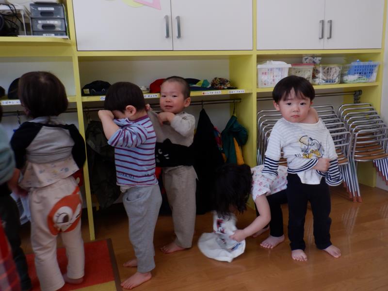 一生懸命ぬぎぬぎして、服も畳んじゃうよ!