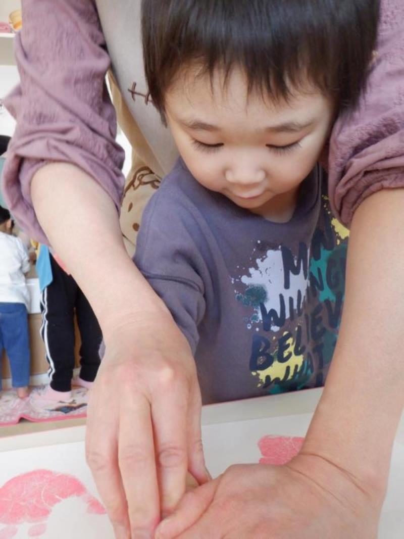 手をぱっちり開く子もいれば、閉じる子もいたり、上手にぺったんできたよ~!