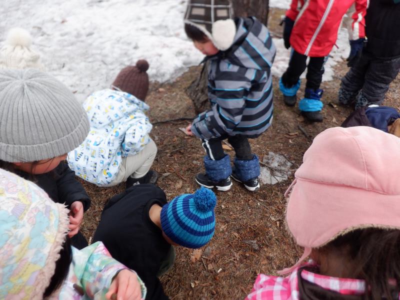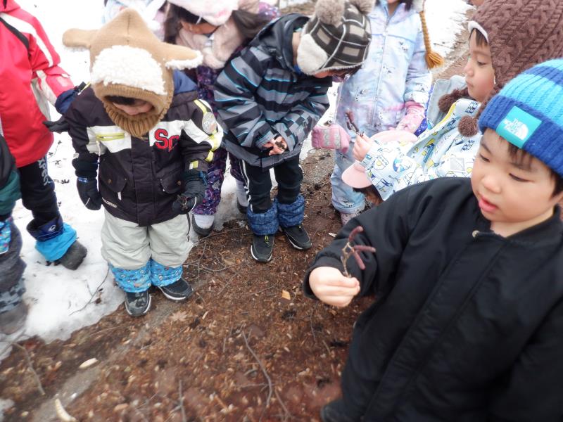 遊歩道では、松ぼっくりや、葉っぱ発見!