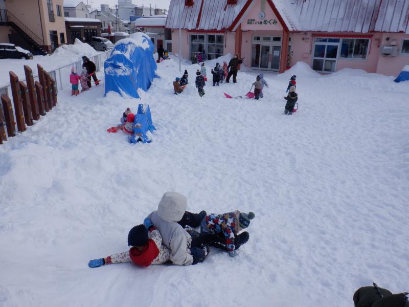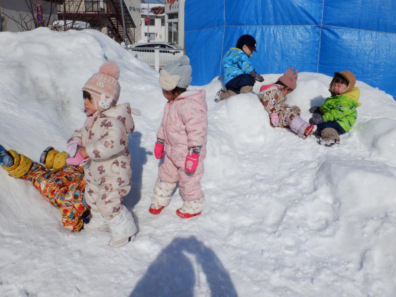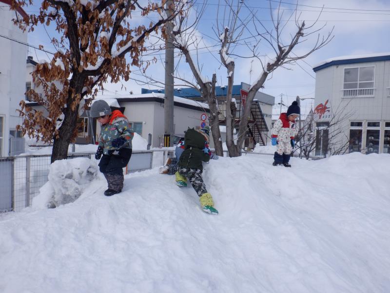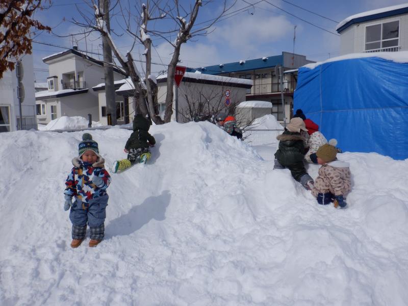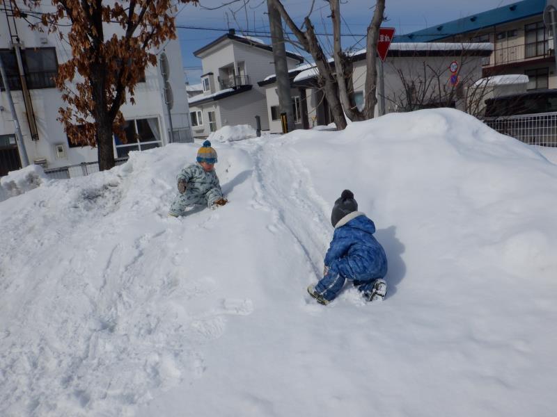でも、お山登りもお尻滑りも、おもしろ~い。