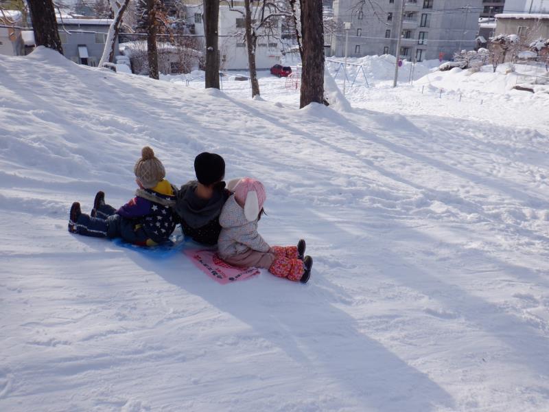 一緒にお尻滑りしたりして、遊んでくれたよ。