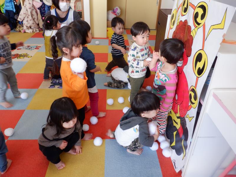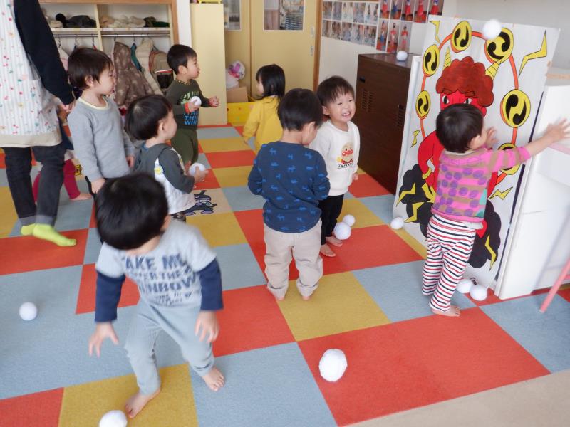 こおり、豆まき遊び ちゅうりっぷさん