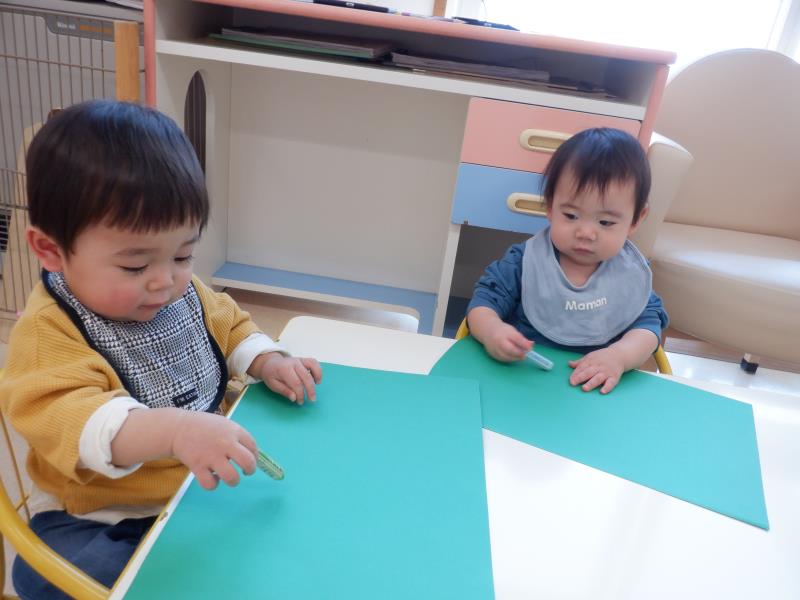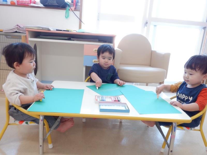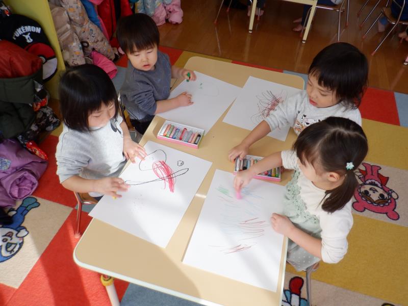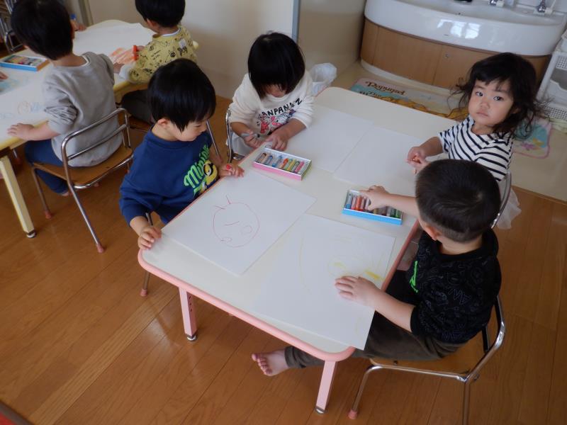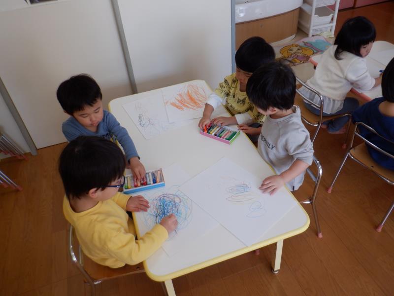クレヨンを使ってお絵描きジージー!!