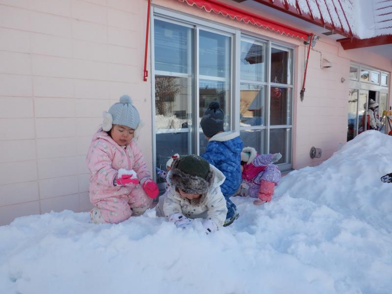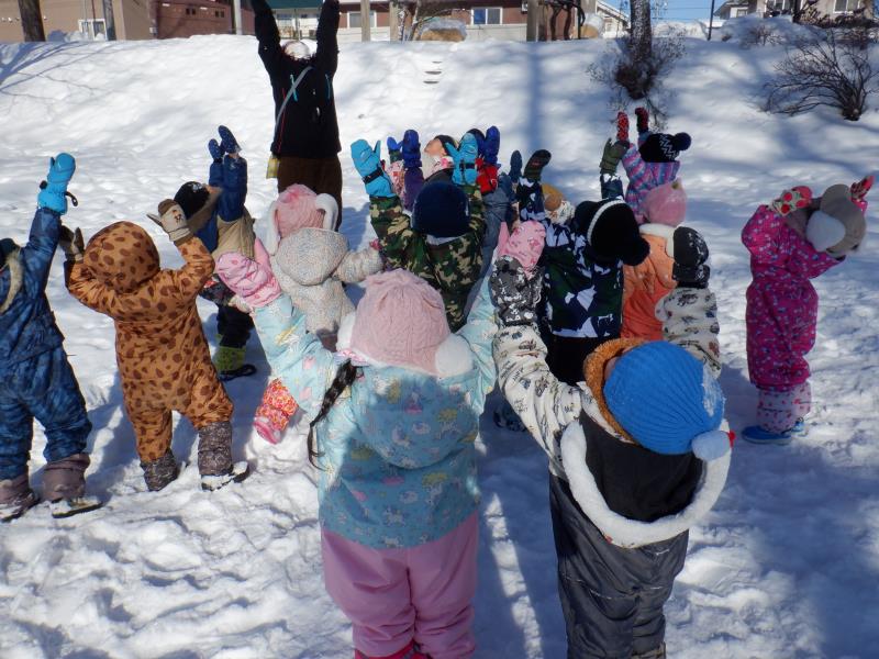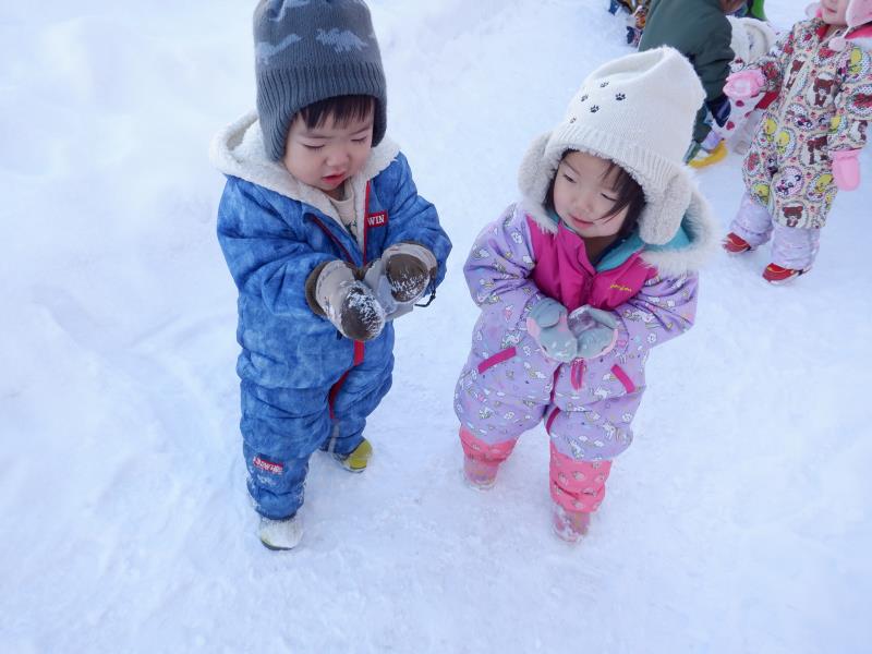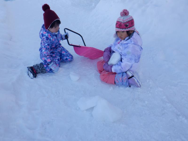 お庭に出て雪遊びをしたよ。