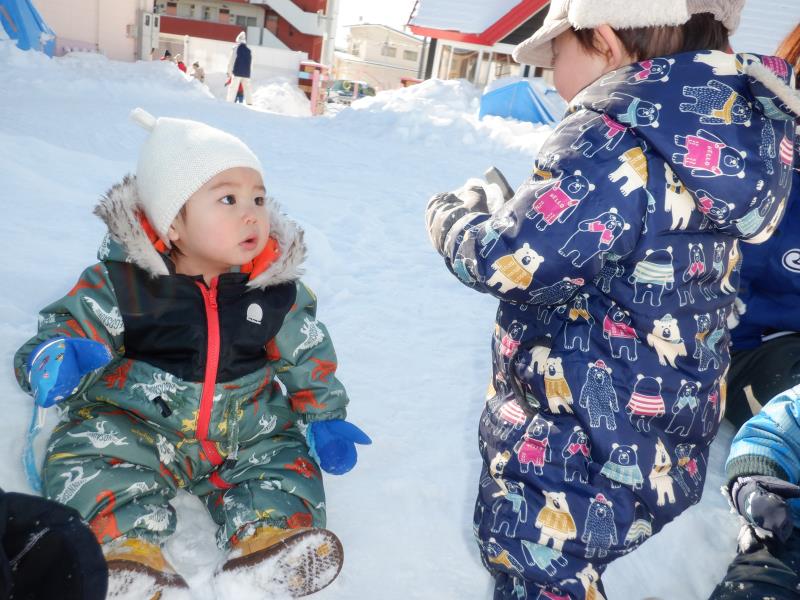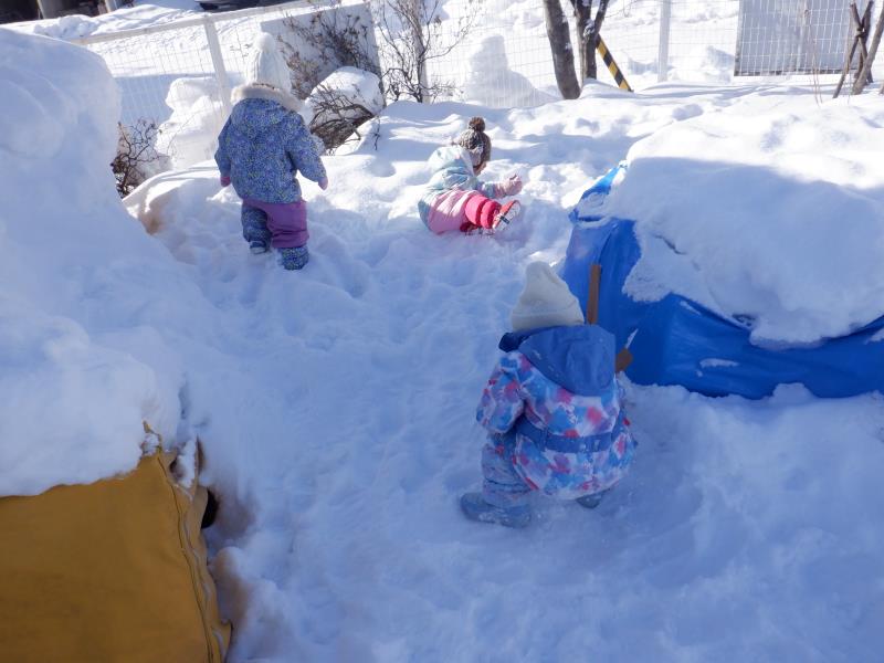お庭で雪遊び!!