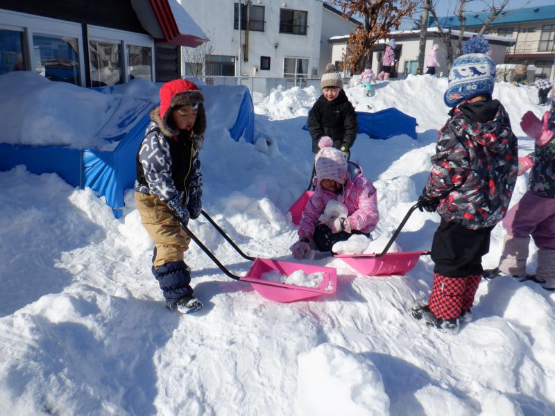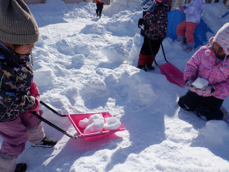 雪の塊も集めてヨイショ ヨイショ
