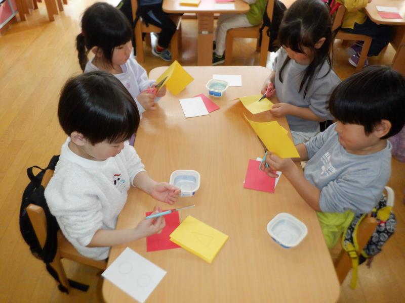 節分に使う豆の袋作りをしました。