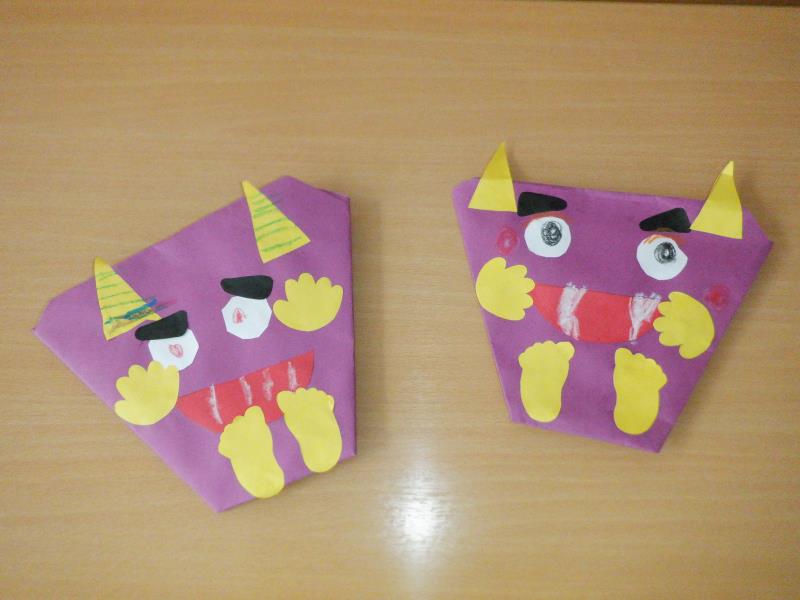 いろいろな表情のオニの顔ができました。