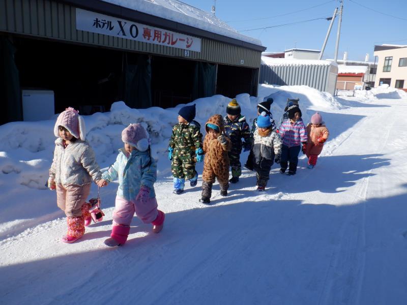 雪道に気を付けて歩いたよ。