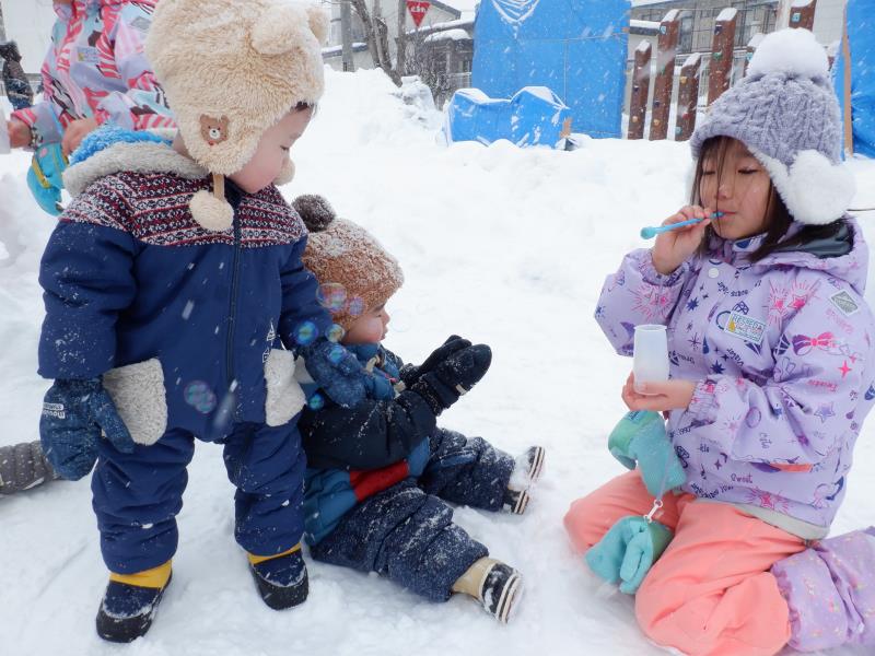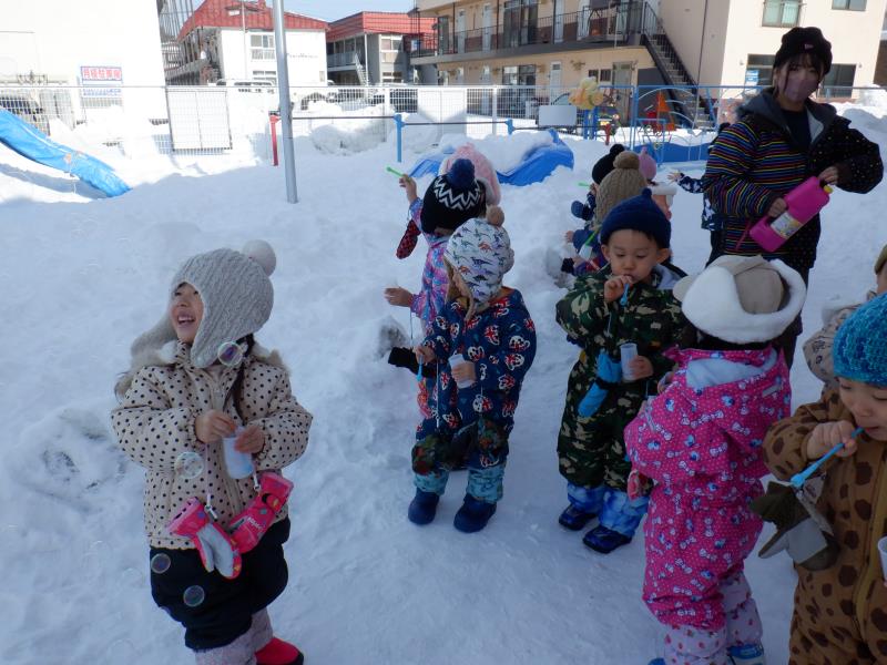 ゆりさんがしゃぼん玉を見せてくれたよ