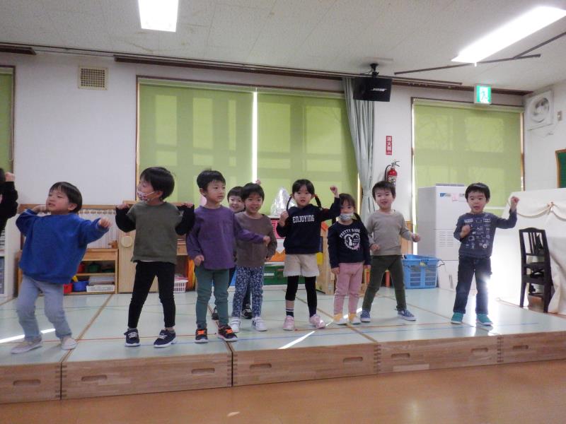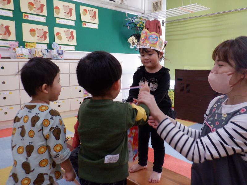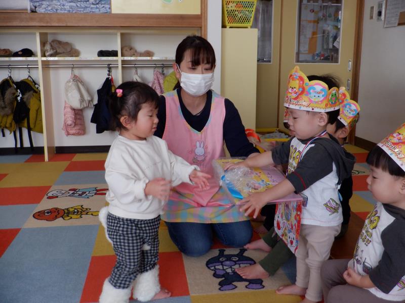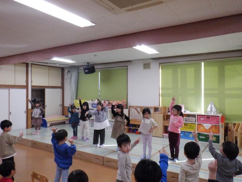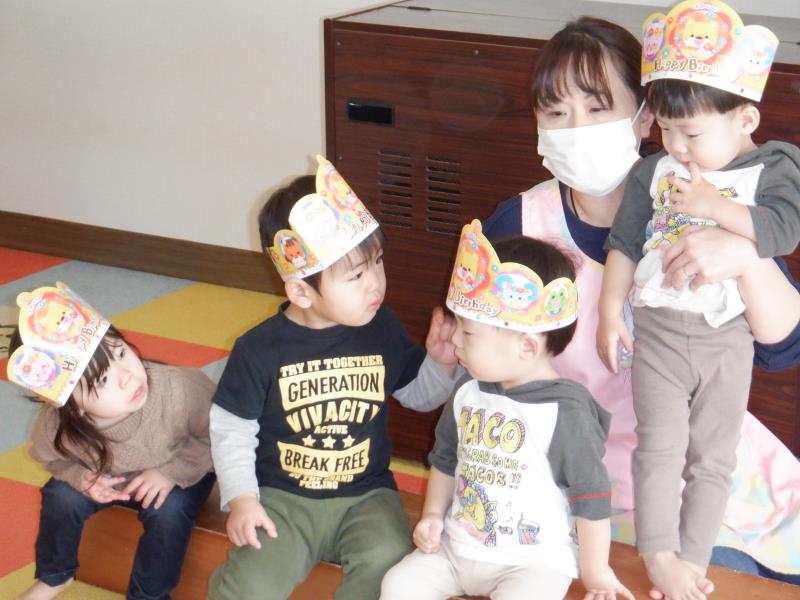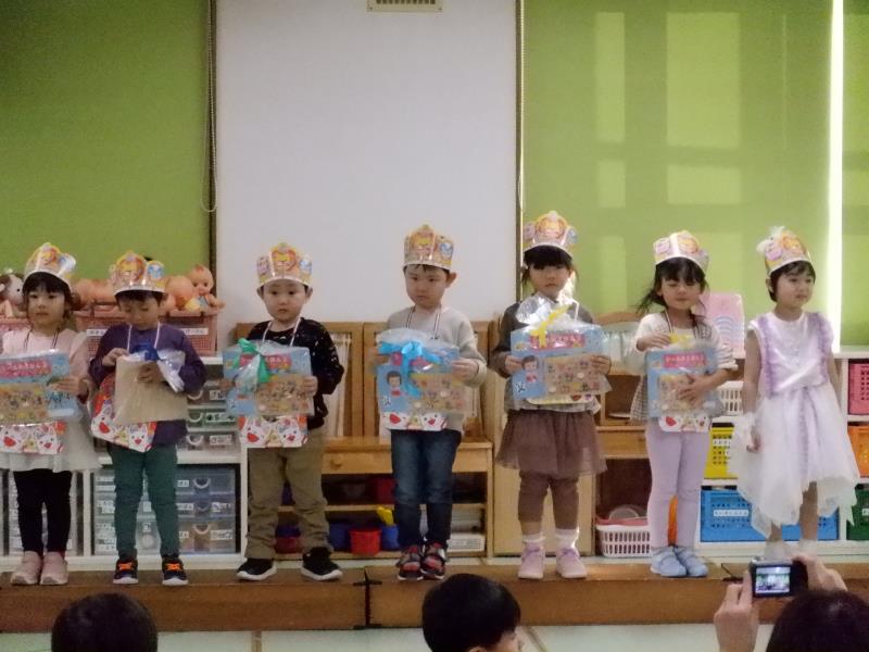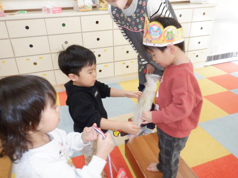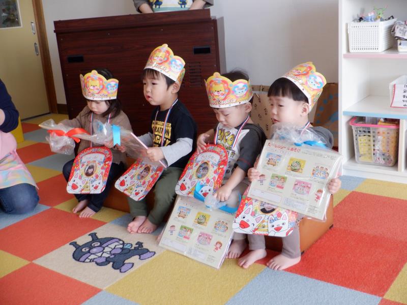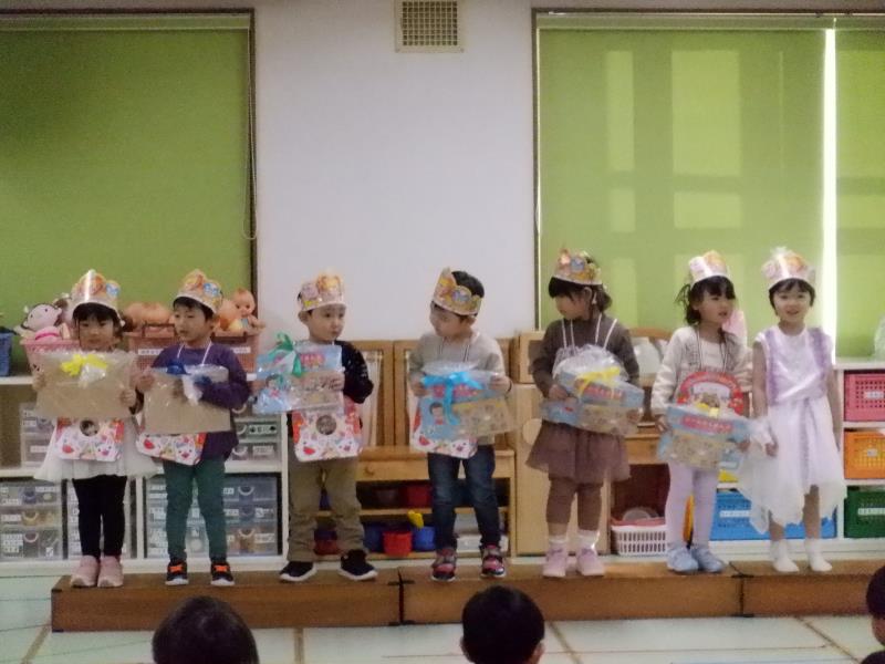ゆりさんの3クラスはお遊戯室でお祝い!