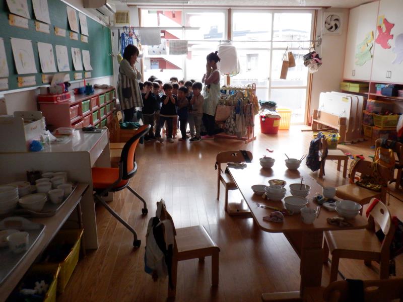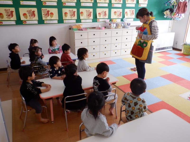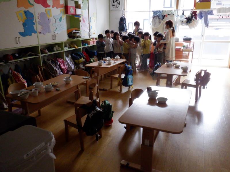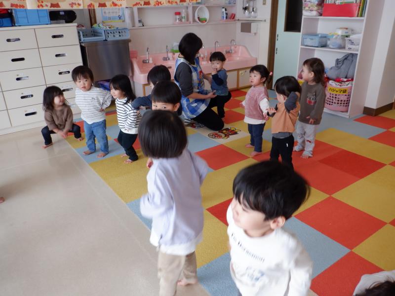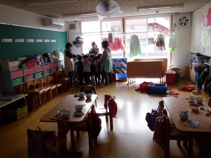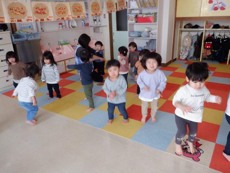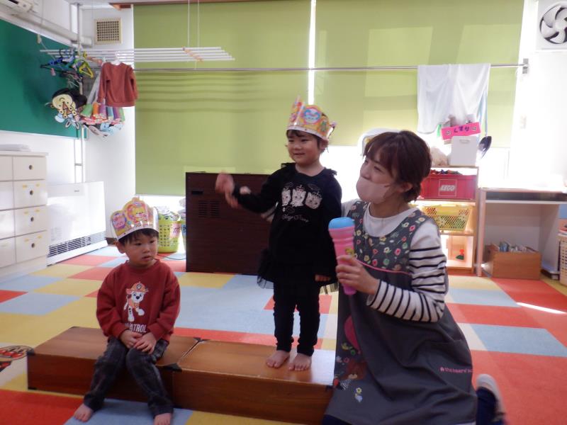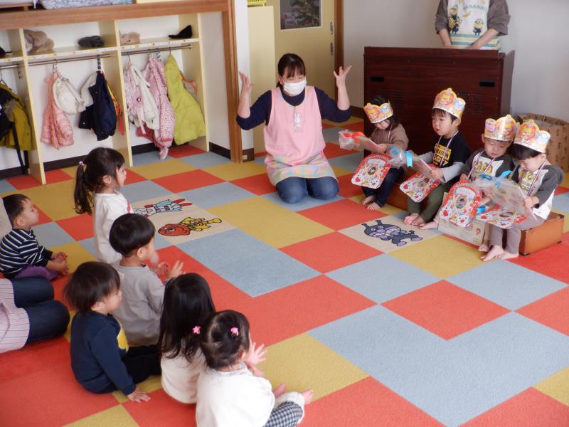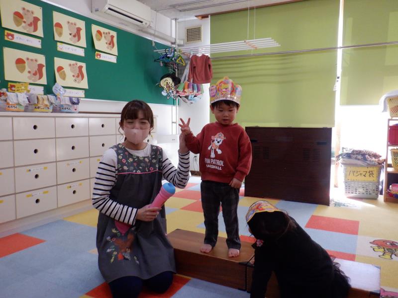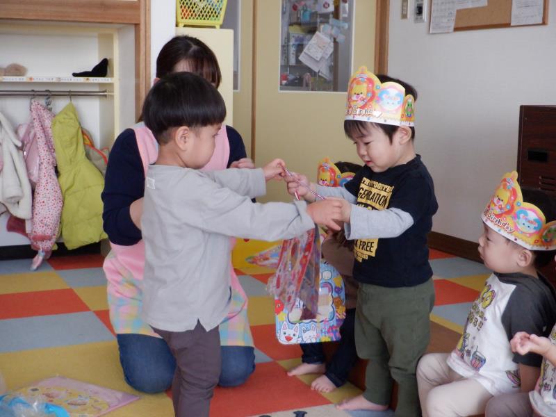ゆりさんの3クラスはお遊戯室でお祝い!