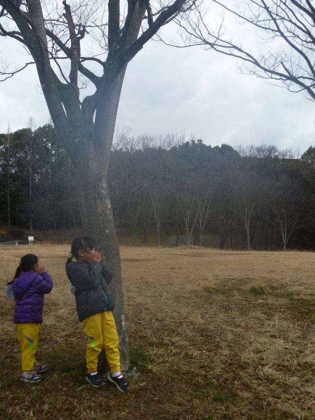 | さあ、ここからは自由にどうぞ!! お約束だけ伝えると、一気に走り出します!!!! 鬼ごっこ・かくれんぼ・逆立ちをしてみたり・・・ 遊具がなくても、遊びが止まりません!!!! すばらしい遊び力に、先生たちもヘトヘトになりました・・・・。 |