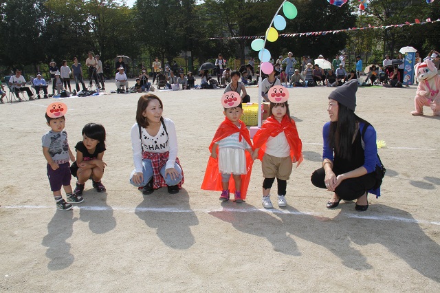 | 年長・組体操 | 親子競技☆年少 | プレイルームのお友だちも来てくれました! |