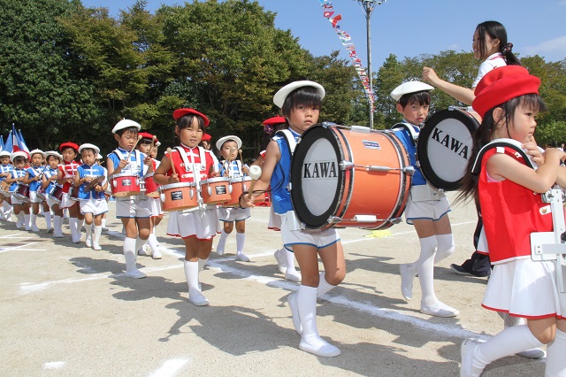 | 最後は年長組の鼓隊パレード!! この日のために、何度も取り組んだね♪ 今までで一番かっこよかったです☆ たくさんの人に拍手をもらった子どもたち、また一つ大きくなったと思います!! |