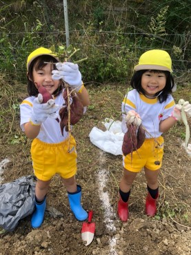 幼稚園に戻ってからは、「おいもの天ぷらがたべたいな~」「スイートポテトを作ってもらいたいな!」とおいもが美味しいお料理に変身することを心待ちにしている様子でした☆