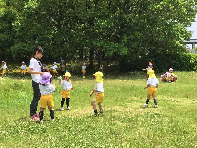 前回のプレイルームでは、雨が降っていましたが今回は、とても良いお天気の中で行うことが出来ました。