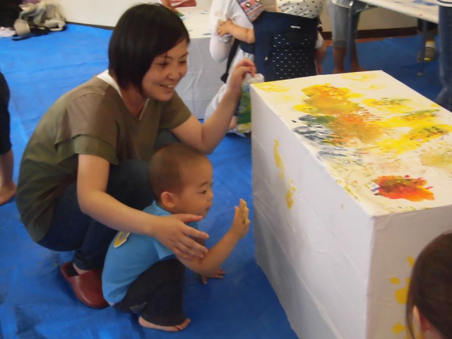 次回のプレイルームでは、絵の具で手やスタンプなどを使って大きな紙や箱に描く絵画「ぬたくり」を行います☆汚れても良い服とお着替えをお持ちになって、たくさんのご参加お待ちしております!!
