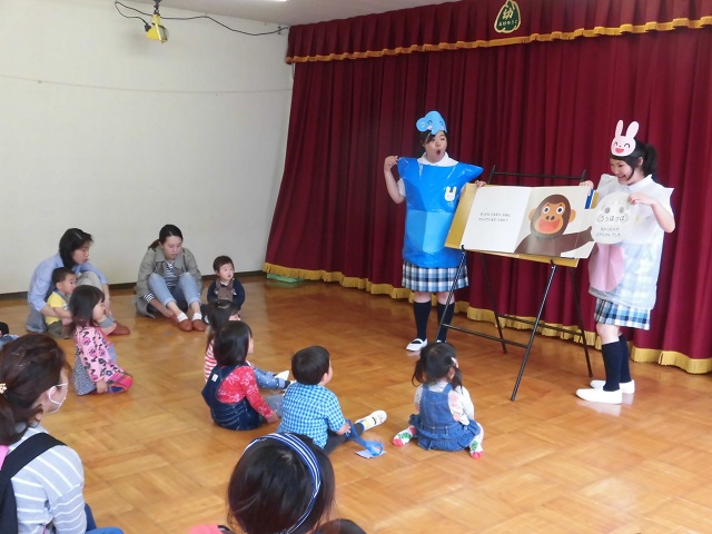そこで大型絵本の読み聞かせをしました☆大きな絵本に興味を持って楽しむ姿が見られました。